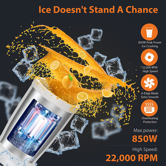 PRO 850W Bullet Personal Blender for Shakes and Smoothies, Protein Drinks, 11 Pieces Set Blender for Kitchen with Ultra Smooth 6-Edge Blade, Coffee Grinder for Beans, Nuts, Spices, 2X17 Oz + 10 Oz Large & Small To-Go Cups, 2 Spout Drinking Lids, BPA Free
