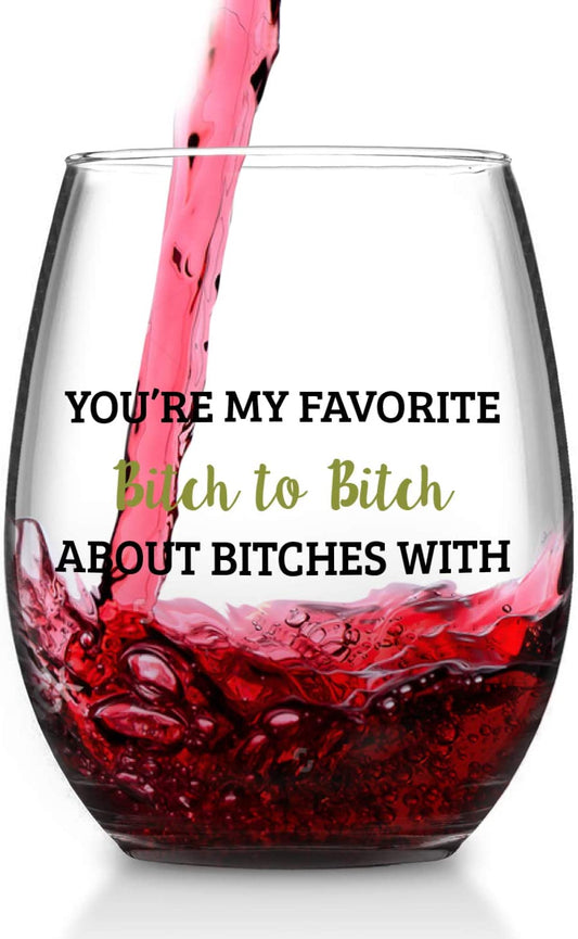 Set of 2 Wine Glasses You'Re My Favorite Stemless Wine Glasses for Girls Bachelorette Party Friends Women Her, 15 Oz