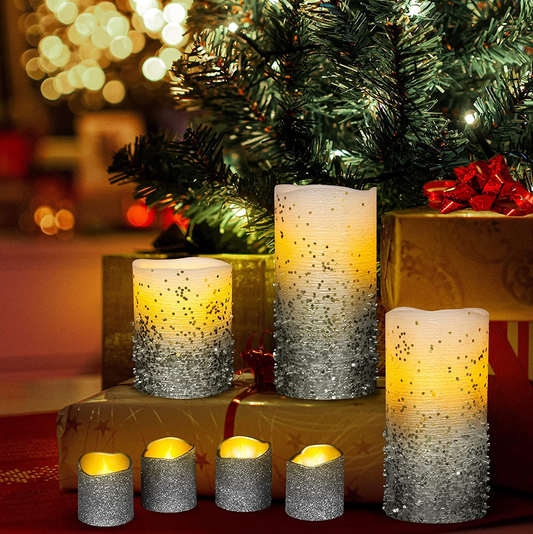 Silver Flameless Candles with Remote Control, Pack of 8 Real Wax LED Candle Battery Operated Pillar Candles and Votive Candles for Home Decor, 8 Flickering Electric Candles Gift Set